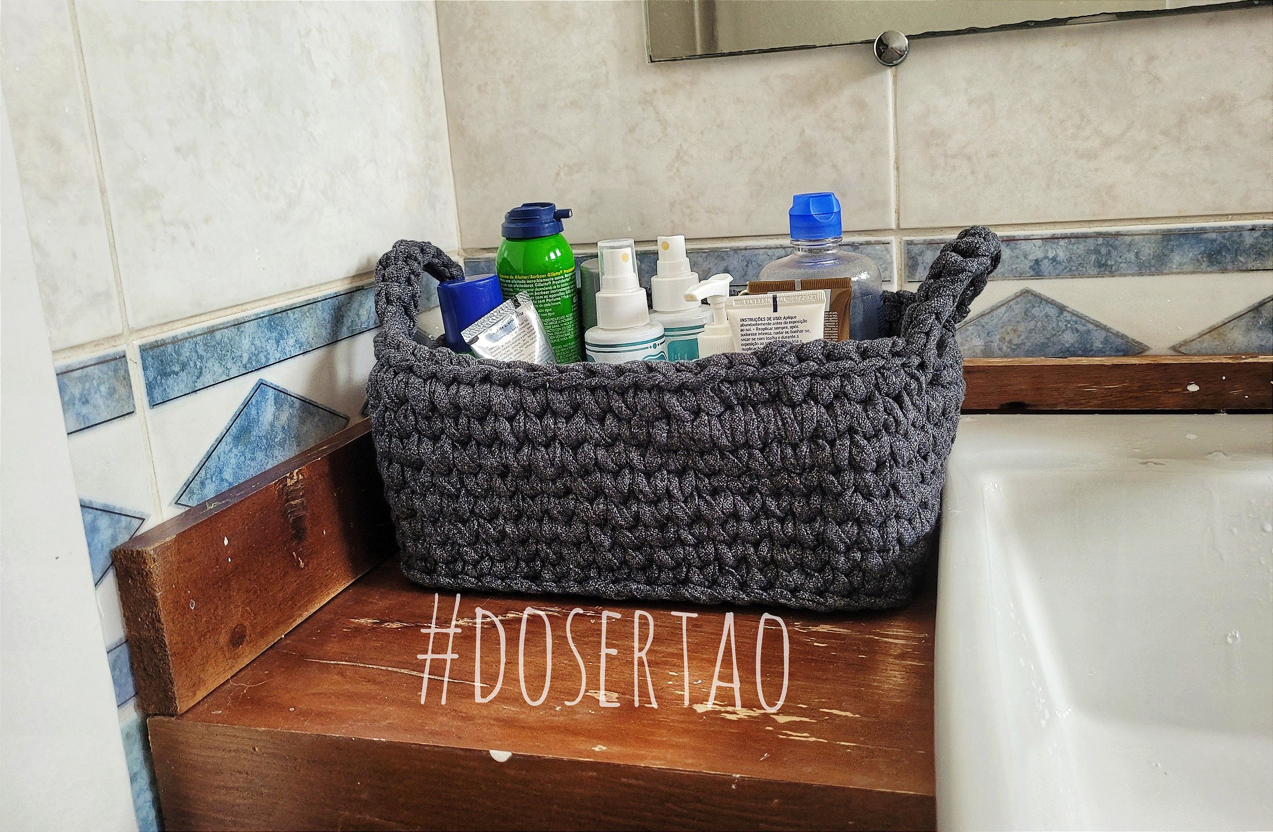 Cestinho organizador retangular totalmente de crochê.