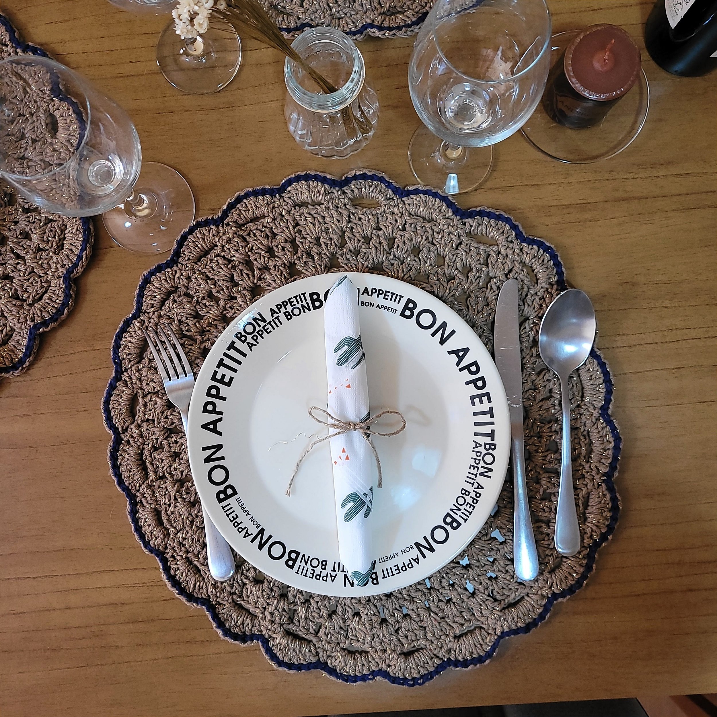 Na minha casa não tinha nenhum sousplat para montar uma linda mesa posta para receber os amigos 🍽🍷.